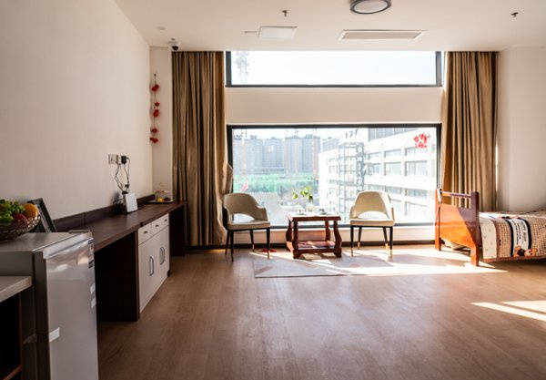 所有房间均配备液晶电视、空调、浴霸、24小时热水、卫生间及智能化呼叫系统,远眺城市天际线,营制出协调的康养空气。均采用全面的适老化设想,核心所有拆修材料及定制家具均采用达到欧洲E0级排放尺度的环保产物,步行即可享受城市绿肺的天然景色?